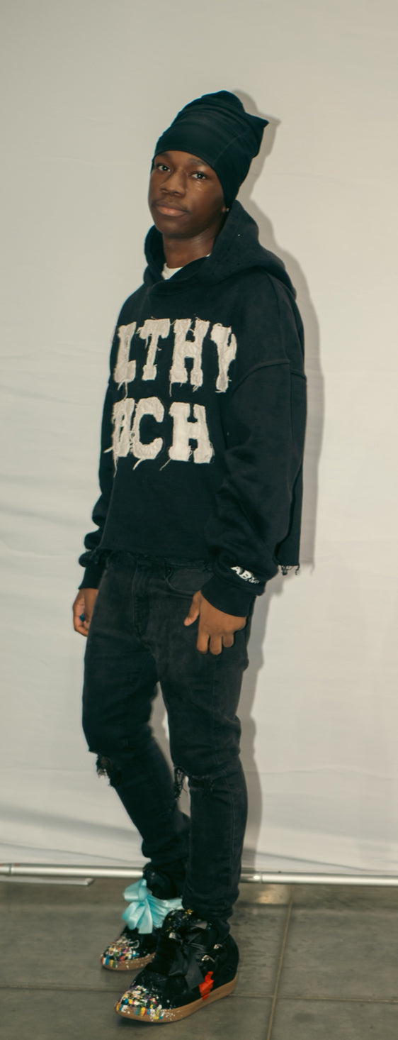The FILTHY RICH Oversized Cropped Hoodie features a bold all-black design that is stitched, streetwear edge with effortless comfort. Crafted from premium heavyweight cotton, this hoodie delivers a soft, durable feel with a relaxed oversized fit.